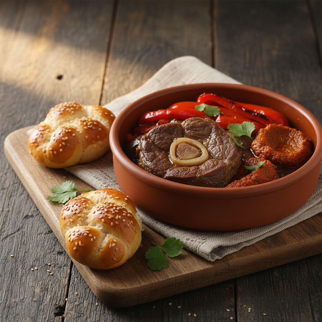 בליווי פלפלים אדומים מתוקים ואריסה מרוקאית מוגש עם מיני חלה מתוקה